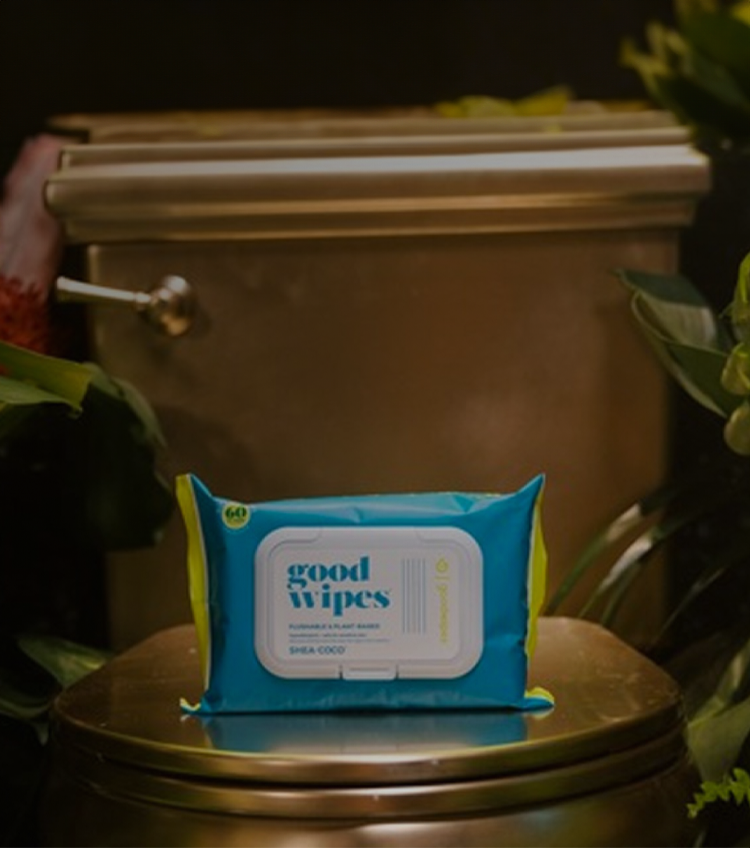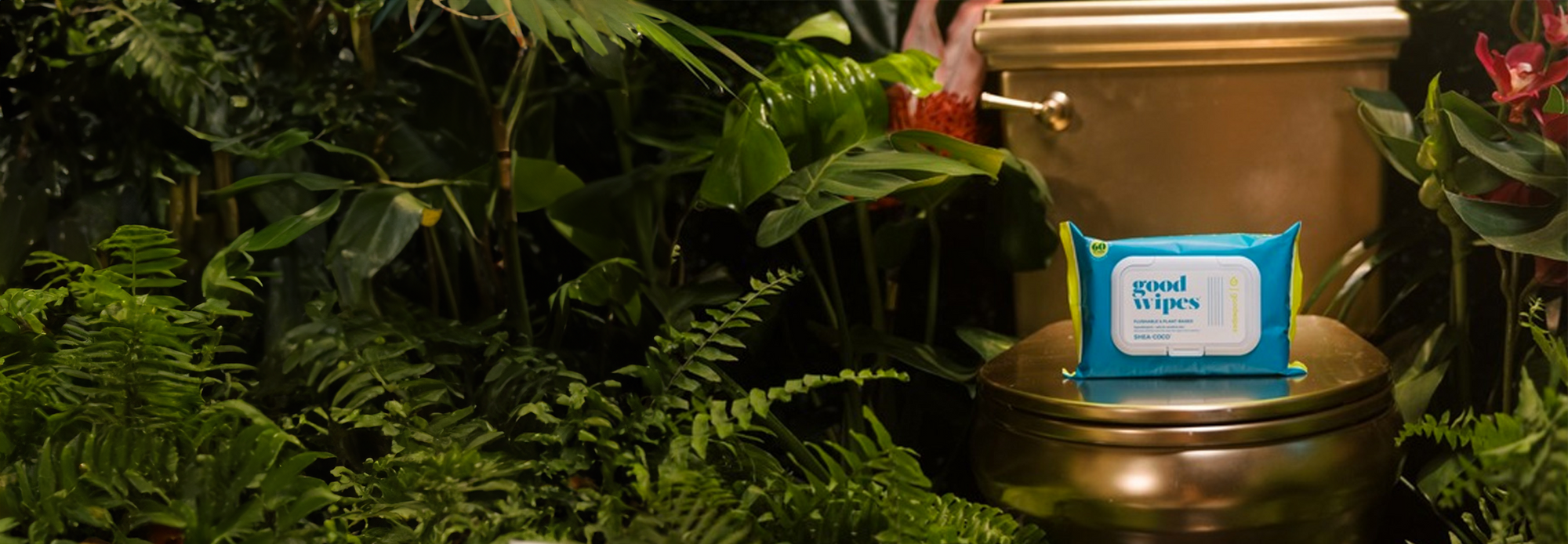 actually flushable wipes™ made with plant-fibers featuring deliciously soothing aloe, vitamin e + chamomile