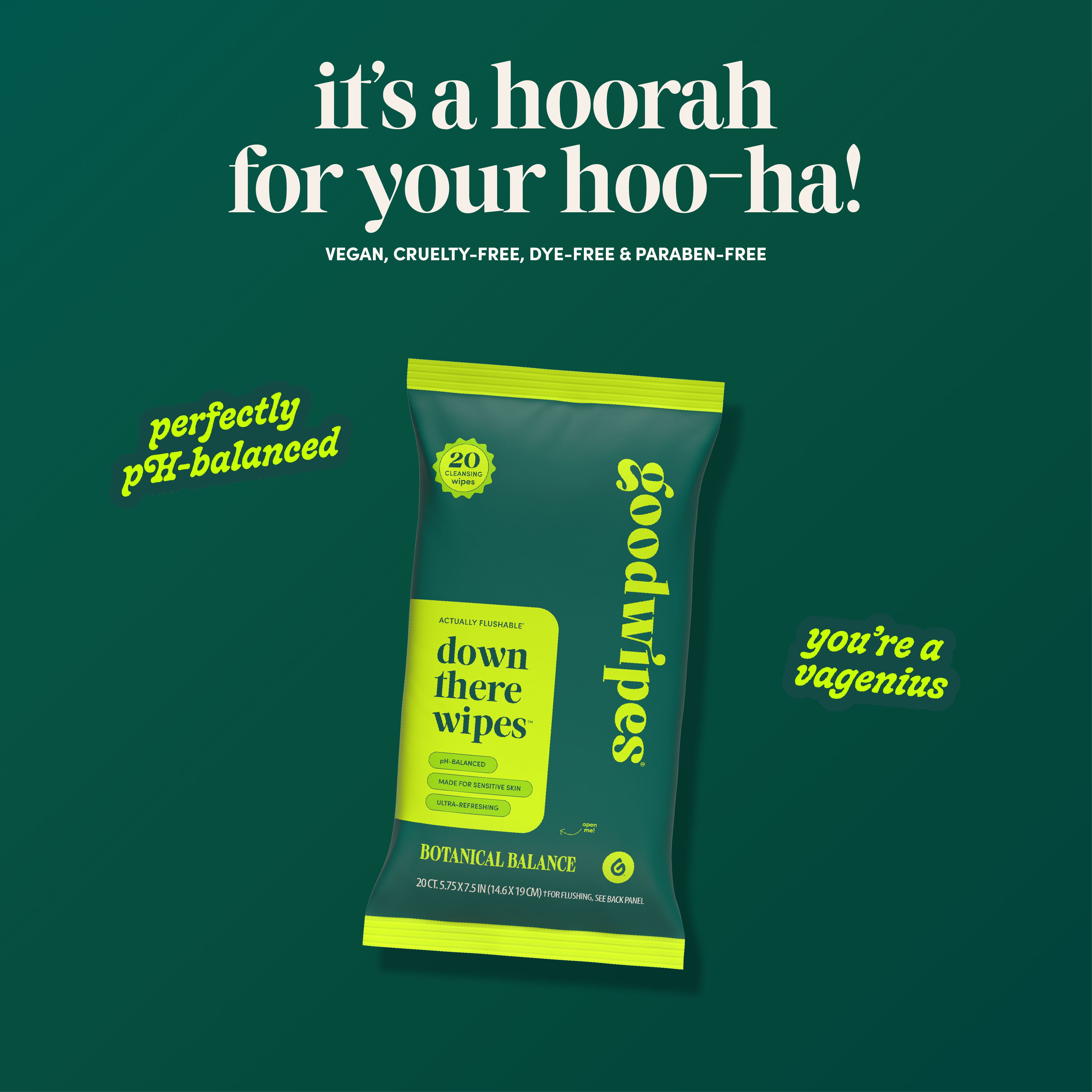 Actually flushable Down There Feminine Wipes – because you’re a vagenius!